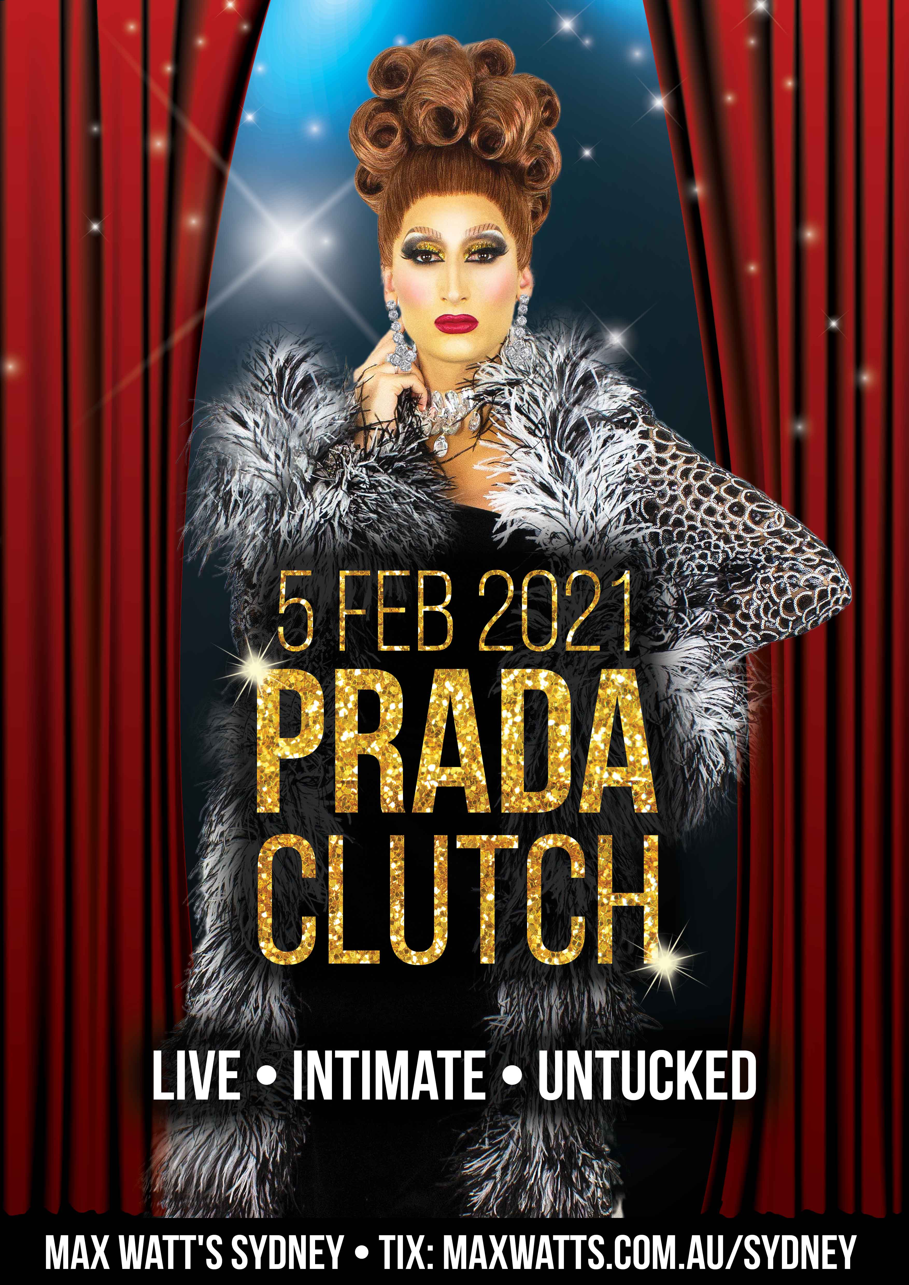 Sydney’s six-foot something songstress Prada Clutch stars in her one-woman show self-titled Prada Clutch: Live – Intimate – Untucked.